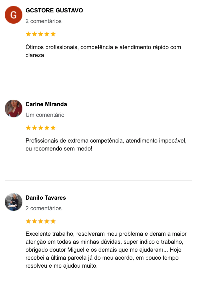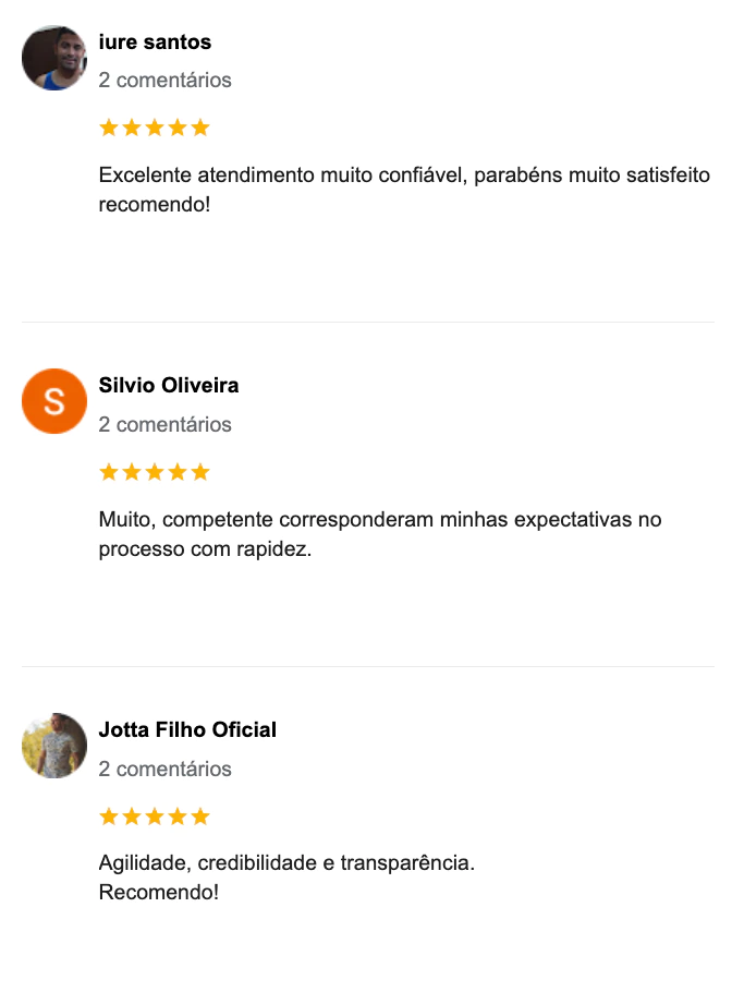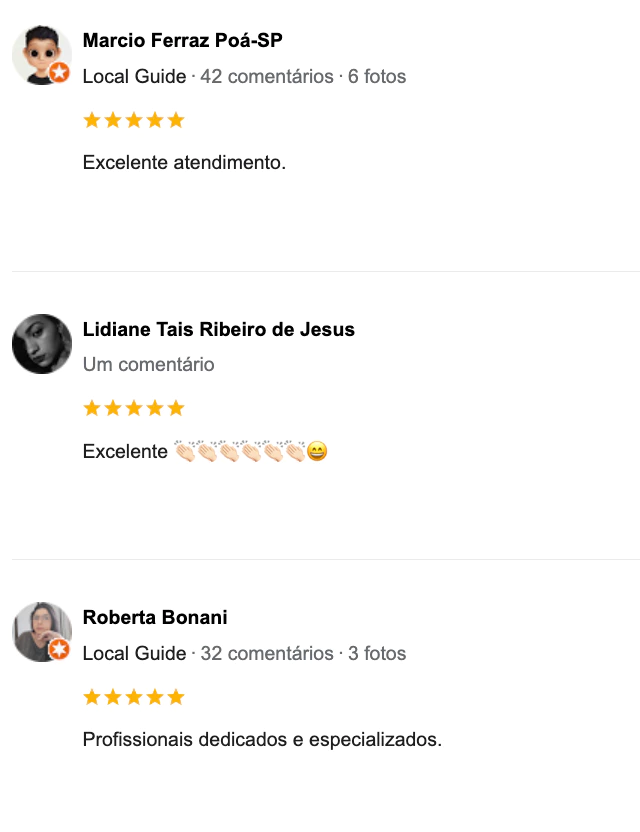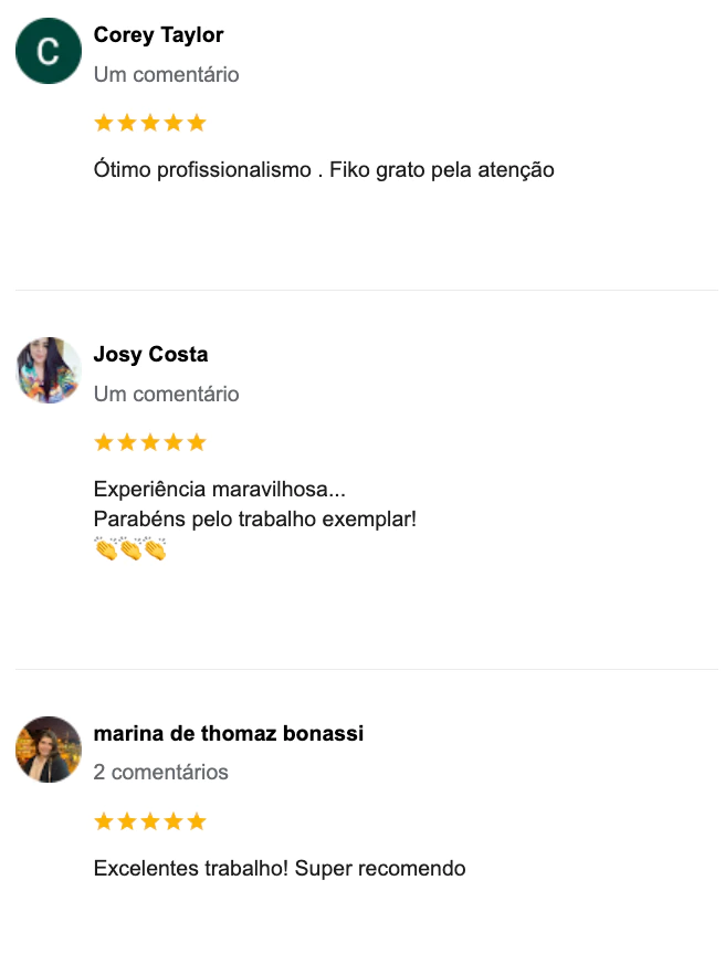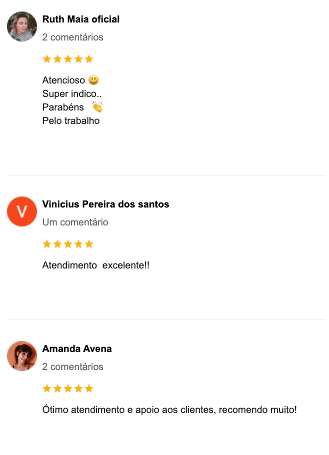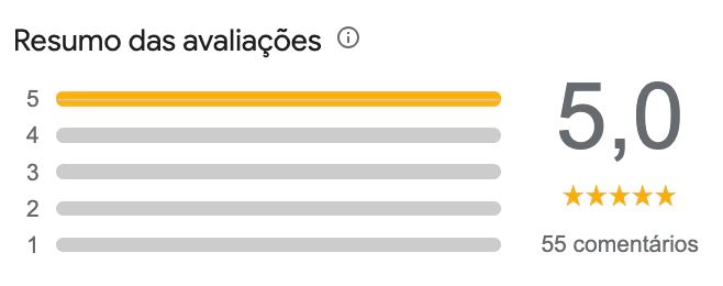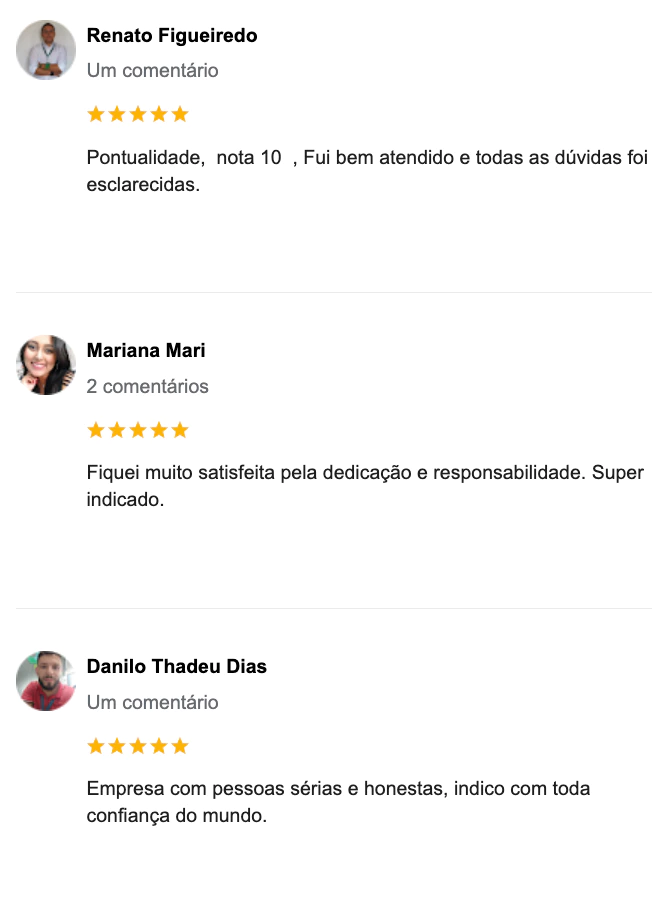Temos avaliação 5 Estrelas no Google, com dezenas de clientes satisfeitos e recomendando nossos serviços.